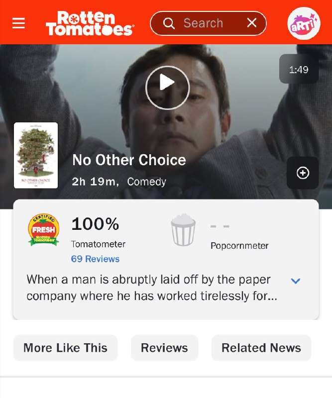فیلم No Other Choice، ساخته‌ی کارگردان Oldboy، در راتن تومیتوز امتیاز ۱۰۰٪ گرفت.