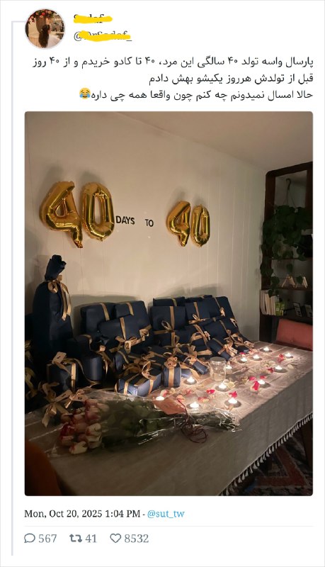 چقدر این کار قشنگه، خارج از جنبه مادی فکر کن از چند وقت قبل فکر کرده که تولد یارشه، براش برنامه‌ریزی کرده، انتخاب کرده که چی بخره و کادو کرده. این حجم از توجه و دوست داشتن خیلی قشنگه