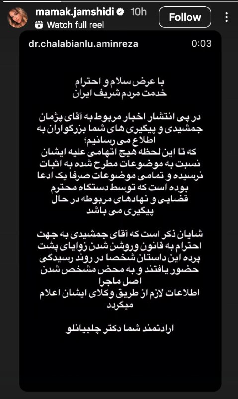 استوری خواهر پژمان جمشیدی در ارتباط با اتهامات‌وارده به برادرش: