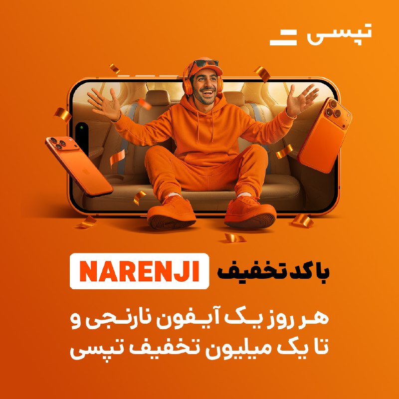 نارنجی بزن، نارنجی ببر! 🍊 ✨ تا یک میلیون تومان تخفیف تپسی + آیفون ۱۷ پرو نارنجی ✨ فقط با زدن کد NARENJI 💰هم تخفیف تپسی میگیری 📱هم توی قرعهکشی روزانه آیفون ۱۷ پرو شرکت میکنی همین الان روی لینک زیر بزن و کد NARENJI رو وارد کن👇 http://tapsi.lin