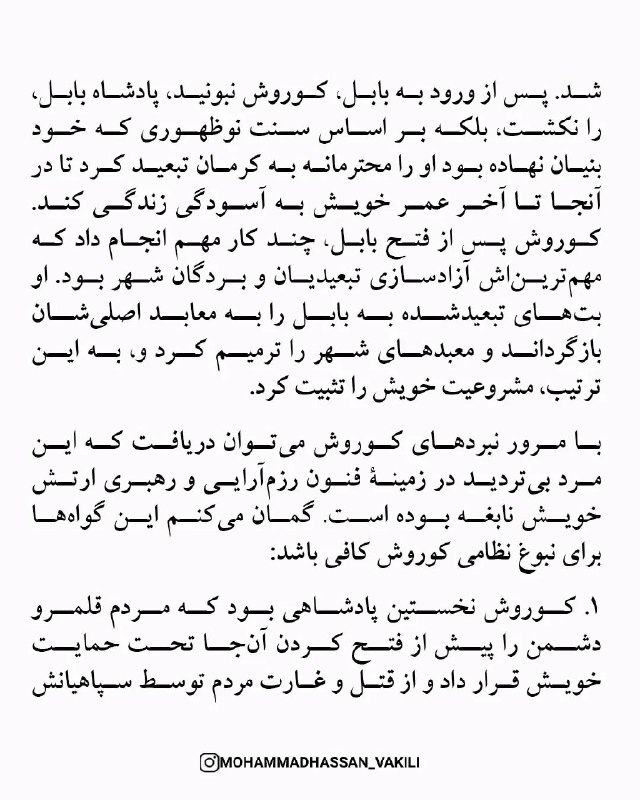 ۱. کوروش رهاییبخش، شروین وکیلی، گفتار دوم: سیاست کوروش.