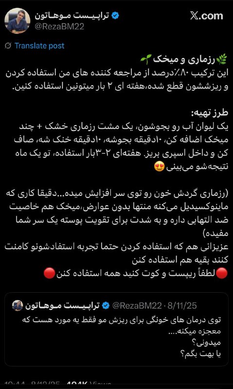 پ.ن :یادتون باشه این درمان امکان داره برای همه نتیجه نده چه بسا نتیجه عکس هم داشته باشه! بعضی موارد نیاز به این داره که خیلی تخصصی تر سرتون برسی بشه