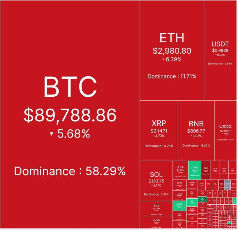 قیمت بیت‌کوین برای اولین بار در 7 ماه گذشته به زیر 90 هزار دلار سقوط کرد!