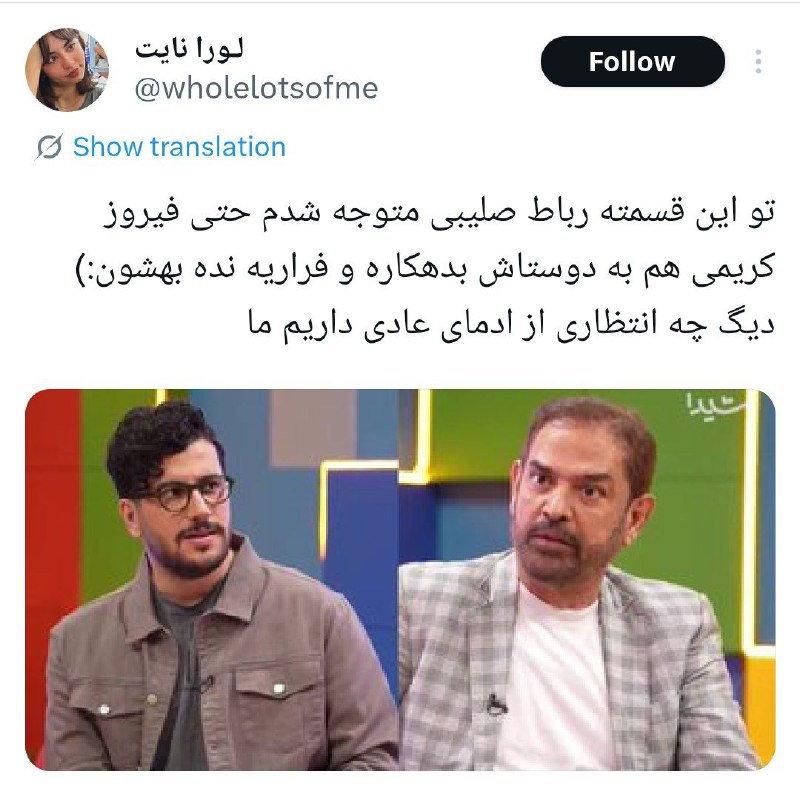 ‏تو این قسمته رباط صلیبی متوجه شدم حتی فیروز کریمی هم به دوستاش بدهکاره و فراریه نده بهشون:)