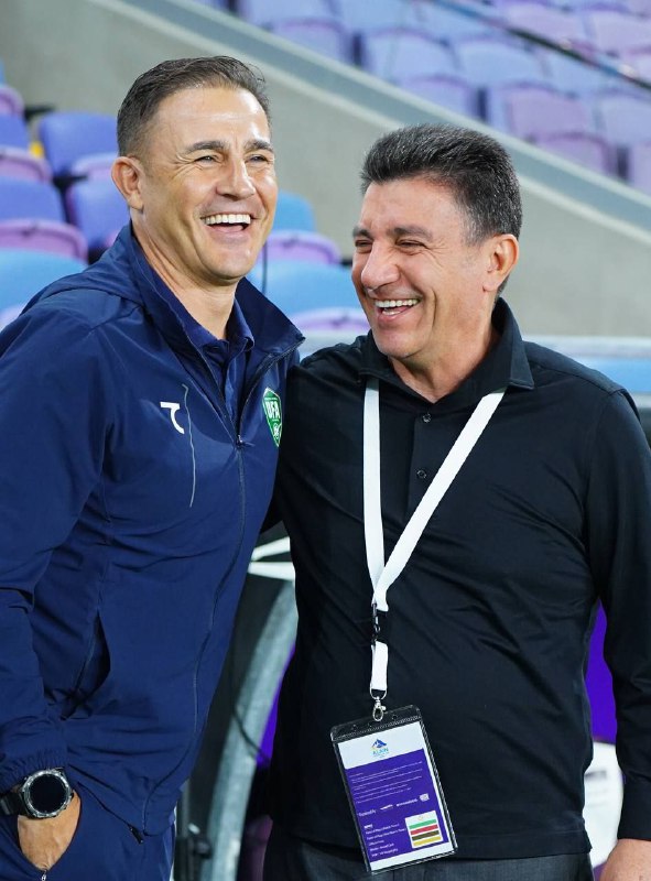 تصویری از امیر قلعه‌نویی و فابیو کاناوارو سرمربیان تیم‌های ملی فوتبال ایران و ازبکستان پیش از دیدار نهایی تورنمنت العین