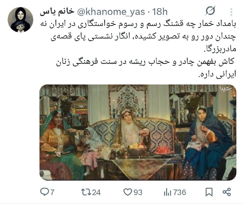 کاش بفهمن چادر و حجاب ریشه در سنت فرهنگی زنان ایرانی داره.