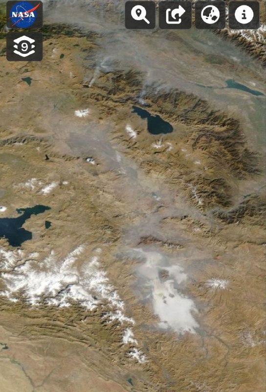 تصویر امروز ناسا از شمال غرب کشور آلودگی عجیبی رو اطراف دریاچه ارومیه و رو شهرهای ارومیه و تبریز نشون میده شاخص آلودگی الان تو تبریز ۲۲۰ هست، اونجور که از تصویر مشخصه یه سری آتش سوزی تو ارمنستان و گرجستان هم اتفاق افتاده