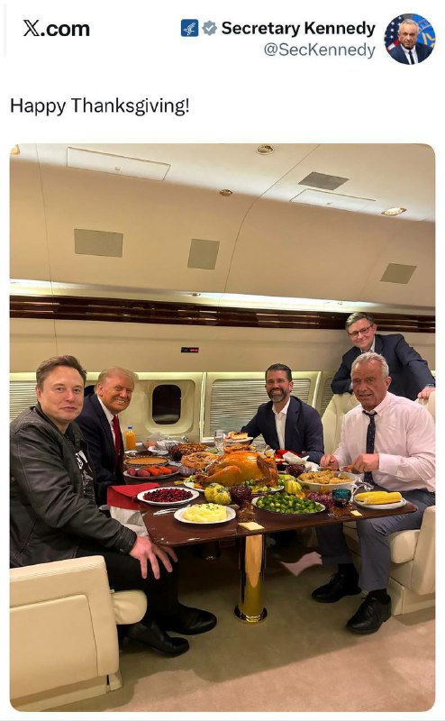 ترامپ و ماسک بالاخره با هم آشتی کردند و در جشن شکرگزاری در هواپیما بوقلمون خوردند.