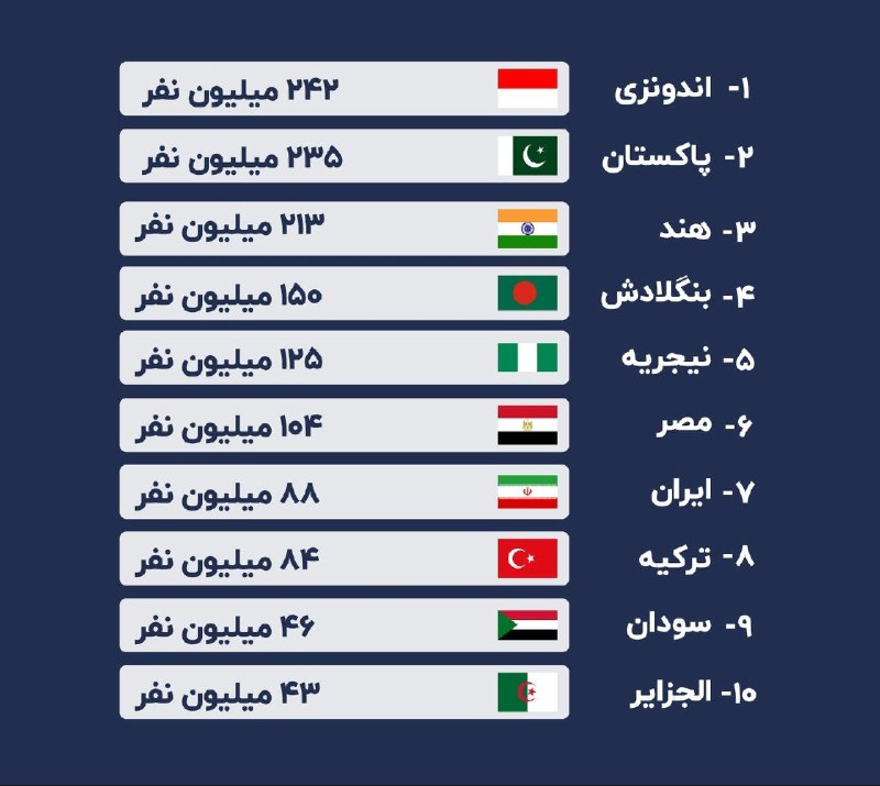 ۱۰ کشور با بیشترین جمعیت مسلمان:
