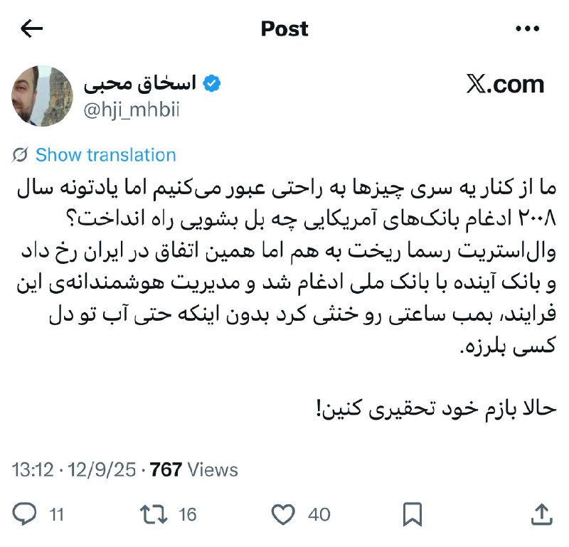 واکنش یک فعال رسانهای به ادغام موفق بانک آینده در بانکملیایران/روزپلاس