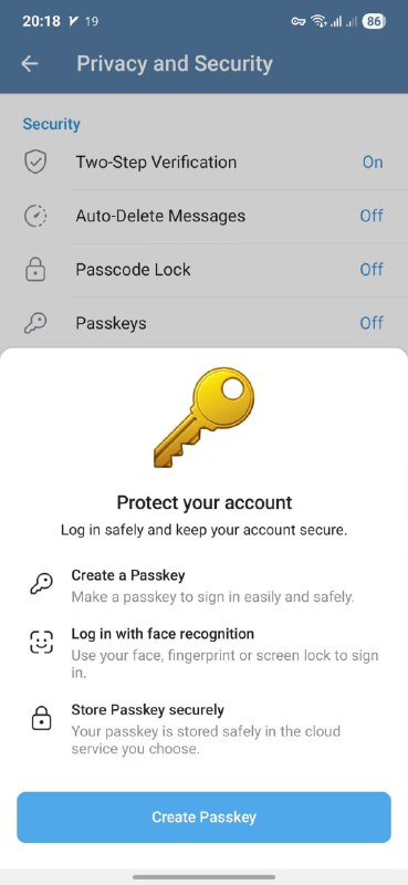 🔻قابلیت Passkey به تلگرام اضافه شد