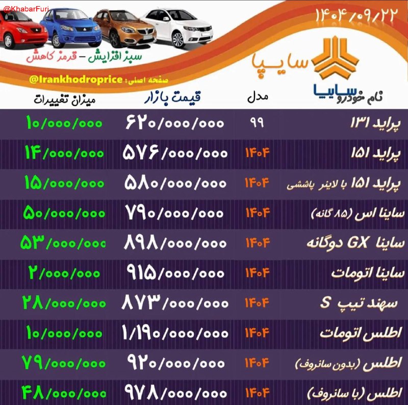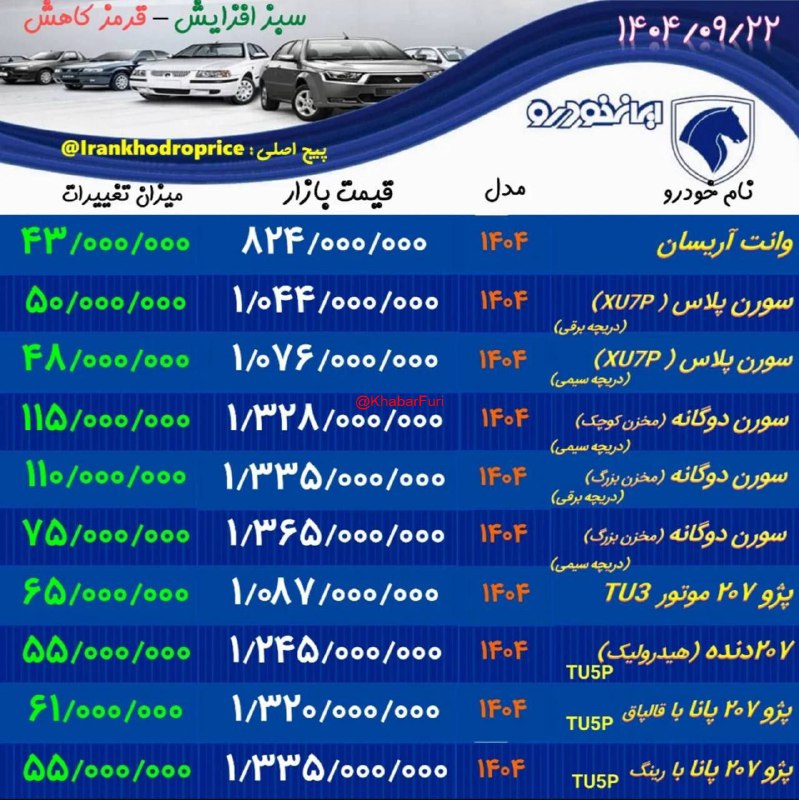 🔴جهش یهویی قیمت ماشین های ایرانخودرو و سایپا رو ببینید