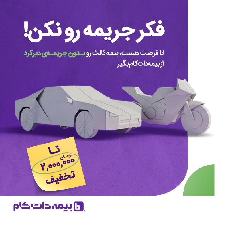 سریع‌تر اقدام کن که بدون جریمه و با تخفیف ویژه، بیمه‌ت رو از بیمه‌دات‌کام بگیری.