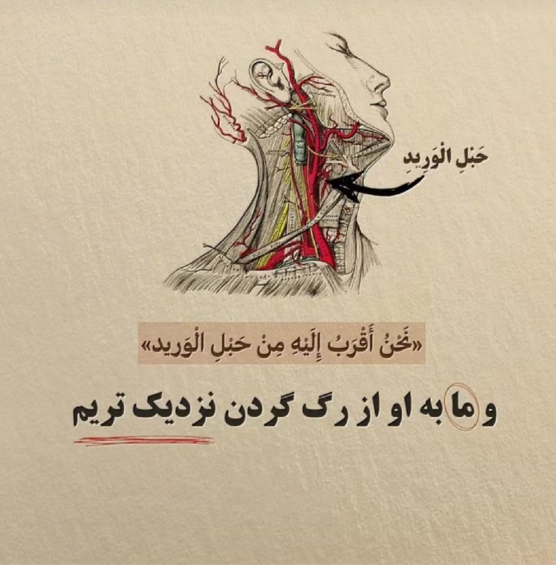 "وَنَحْنُ أَقْرَبُ إِلَيْهِ مِنْ حَبْلِ الْوَرِيدِ"