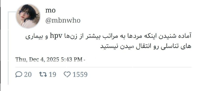 تو تایمی که داشت درمان میشد برای سرطانش به دکترش گفته بود نمیخواد بدونه از HPV بوده یا نه چون میخواد چند روز آخر عمرش حداقل از شوهرش متنفر نباشه