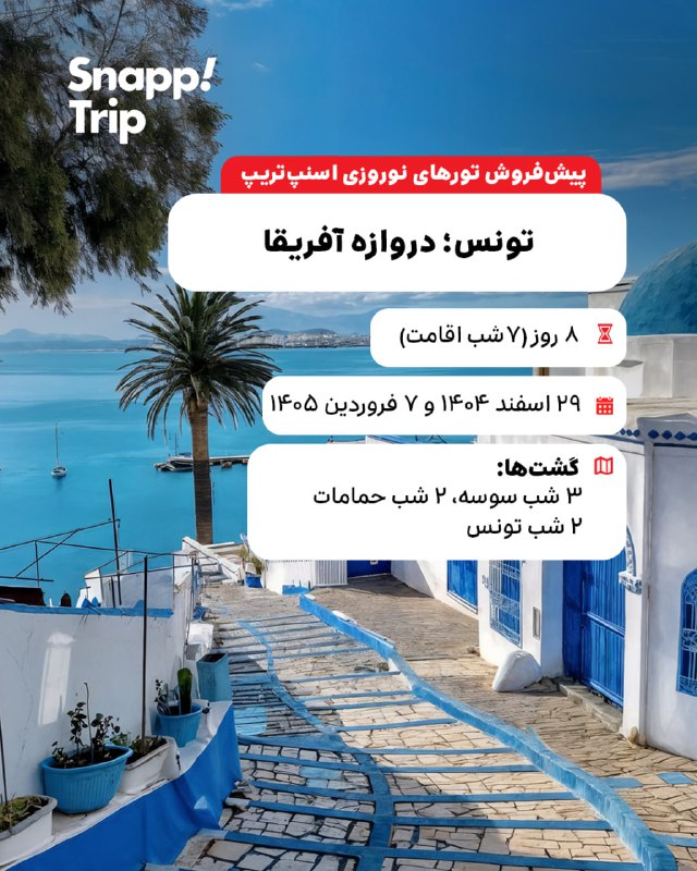 🇹🇳 تعطیلات نوروز امسالت رو بسپار به اسنپتریپ و با رزرو تور تونس، یه ماجراجویی تازه رو شروع کن!
