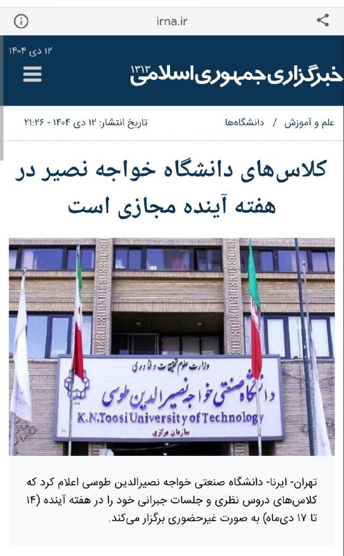 کلاس‌های دانشگاه خواجه نصیر هم در هفته آینده مجازی شد./ایرنا