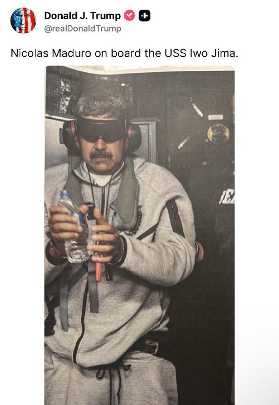 🔴 اولین عکس منتشر شده از مادورو پس از دستگیری