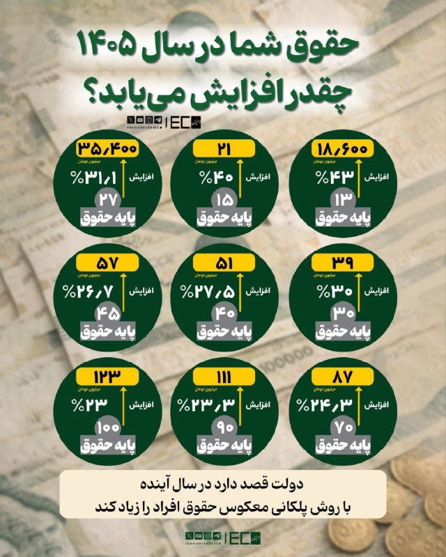 🔹 افراد با پایه حقوق ۲۷میلیون تومان، با رشد ۳۱ درصدی، ۳۵ ملیون تومان دری