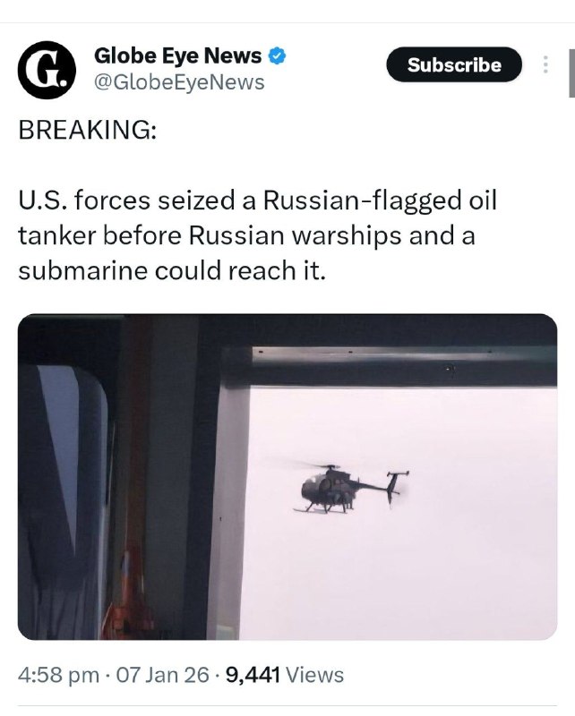 نیروهای آمریکایی کشتی نفت‌کش Marinera (که قبلاً Bella 1 نام داشت) را در اقیانوس اطلس توقیف کردند و دقایقی پیش وارد کشتی شدند.