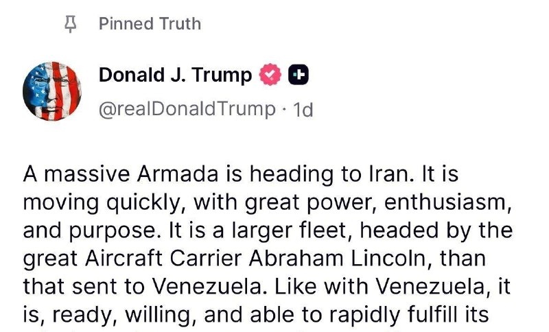 ترامپ پستی که توش ایران رو تهدید کرده بود که یا توافق کنه یا آماده جنگ باشه رو پین کرد (توی شبکه خودش تروث)