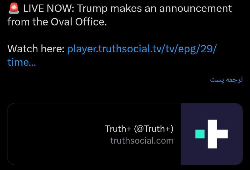 ترامپ تا دقایقی دیگر در اپلیکیشن تروث سوشیال به صورت لایو قرار هست صحبت کند