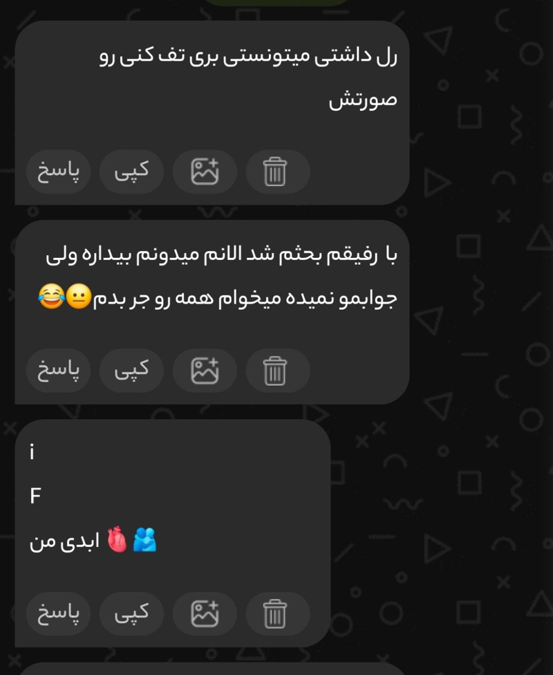 چشمممم بزار رل بزنم نق میکنم تو صورتش😂😂