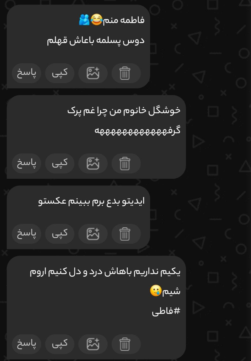 فاطمه کیه😂😂 چ خوشحال میشم اینجوری هم دیگ رو دوس دارید