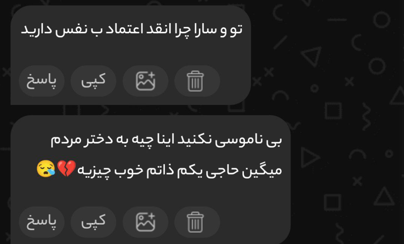 ۴.بچه ها واقعا شخصیت خودتون میاد پایین با این حرفا منم اصلا حوصله بحث کردن ندارم