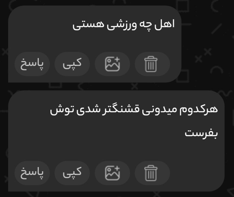 متاسفانه تمام عکسام یا داخل باشگاه بوده یا داخل مسابقه