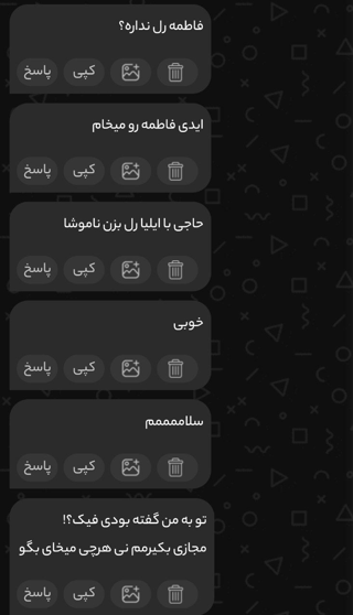 داش چرا انقدر پیگیری دیگ تو ناشناس من حرف هر کی باشه نمیزارم اجازه ندارم ی بار گفتم😐