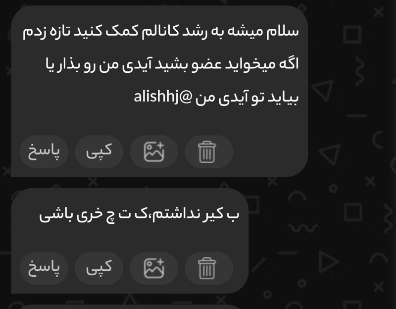 خب وقتی محدودی چجوری میخوای بری به مدیر چنل بگی😂😔ایدیتو بده من بهش میدم میگم بهت پیم بده 😂
