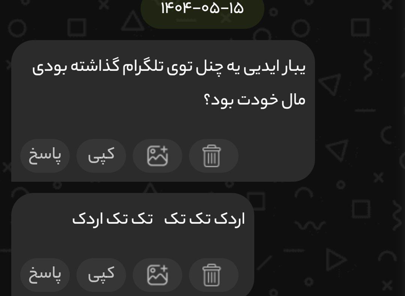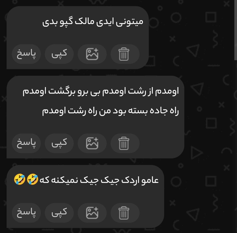 خب وقتی محدودی چجوری میخوای بری به مدیر چنل بگی😂😔ایدیتو بده من بهش میدم میگم بهت پیم بده 😂