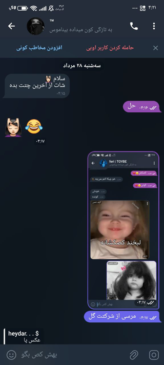ژینا نمیدونم تازه باهاش چت کردم 👍