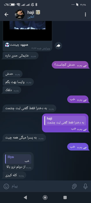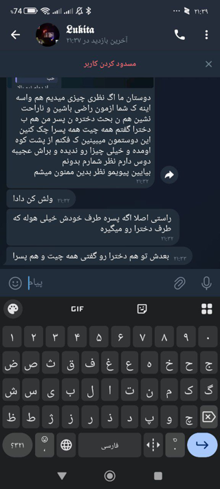 دوستان ما اگ نظری چیزی میدیم هم واسه اینه ک شما ازمون راضی باشین و ناراحت نشین هم ن بحث دختره ن پسر من هم ب دخترا گفتم همه چیت همه پسرا چک کنین این دوستمون میبینین ک فکنم از پشت کوه اومده و خیلی چیزا رو ندیده و براش عجیبه دوس دارم نظر شمارم بدونم