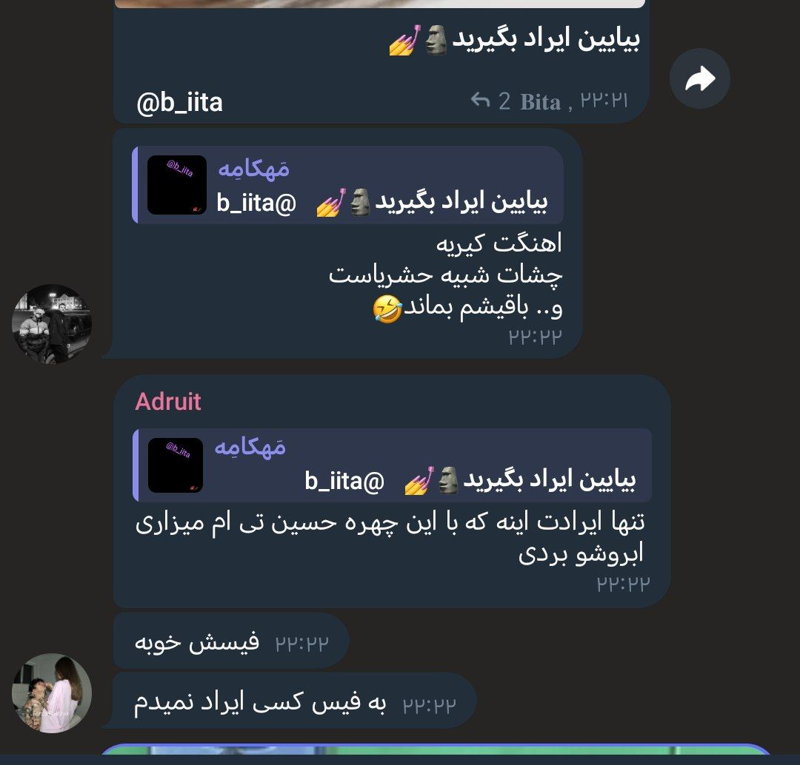 Here we are creating the best chat channel. Join us. Mahkameh Link: