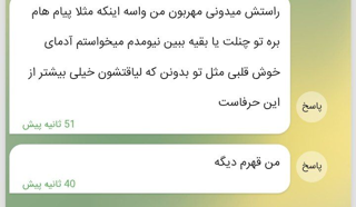 1.دنبال رابطه دو روزه و پر *اشی بازی نیستم،ی رابطه سالم که آرامش روانمو از دست ندم