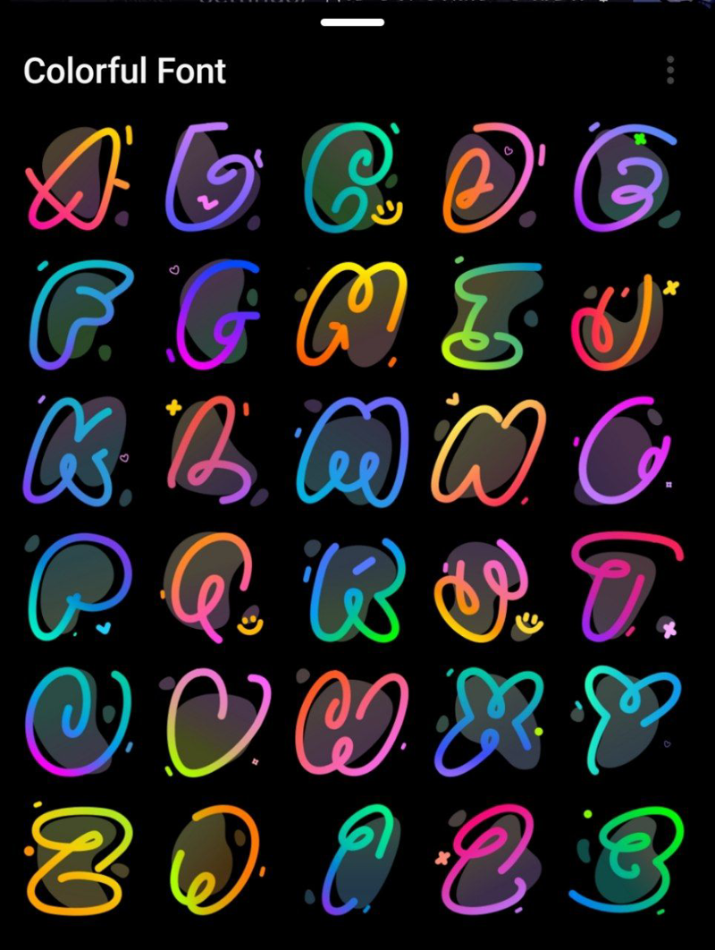 پک ایموجی های حروف رنگی نئونی