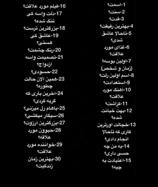 بیاید پی اول شما سه تا سوال از من میپرسید وقتی جواب دادم بعد من سه تا سوال از شما میپرسم🙃🫶🏻