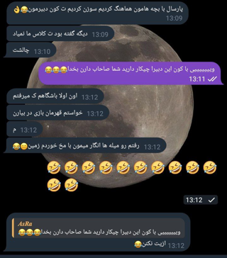تو تویه حموم گیر کردی بعد میخا مخ منو بزنی🤣🤣🤣🤣🤣🤣