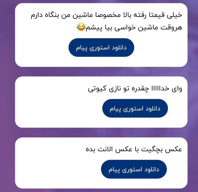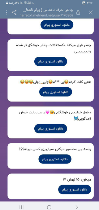 ۱ بوص ۲ عه ایسلا خوب شی ۳بوص بوص ممنون ازت خواهش ۴ ارزش نداری حرف میخای بزنی پیویمو گذاشتم آنقدر خایه نداری زیر سن قانونی باشی حرفی برات ندارم😂 سنت از ۲۵ به بالا بود حرف میتونم بزنم ( ناماس دی باییییی) ۵من با حجاب سنم میره رو ۲۵ ۲۶😂😂😂