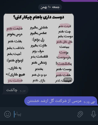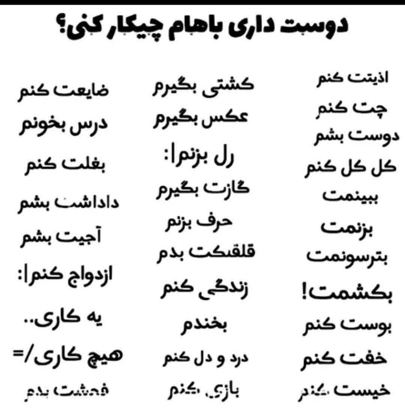 خب خب چالش اینه که اینو پر میکنید میفرستید پی 😍😍.
