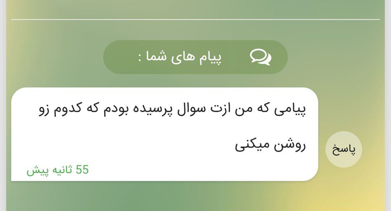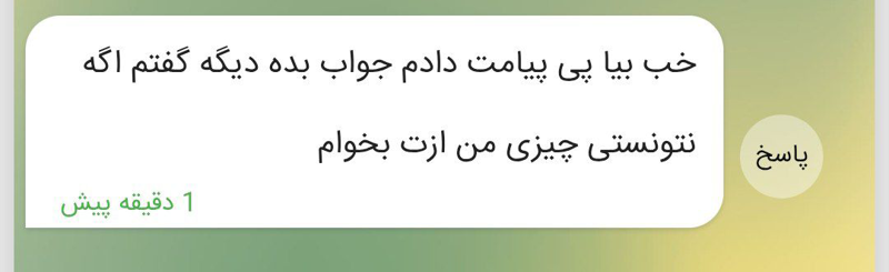 وااات؟! اولا من چیزی نگفتم ک بخای قهر کنی، دوما رل من از ساعت 12 آن نشده