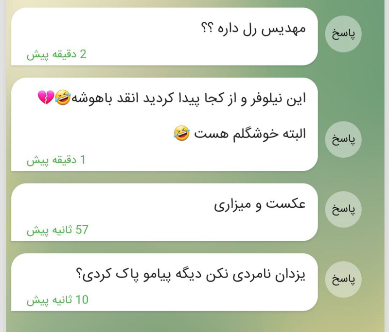 اولا ادب، دوما اینکه من رو کون یکی از رفیقام کراشه ولی نمیده، ولی تو خیلی گاوی