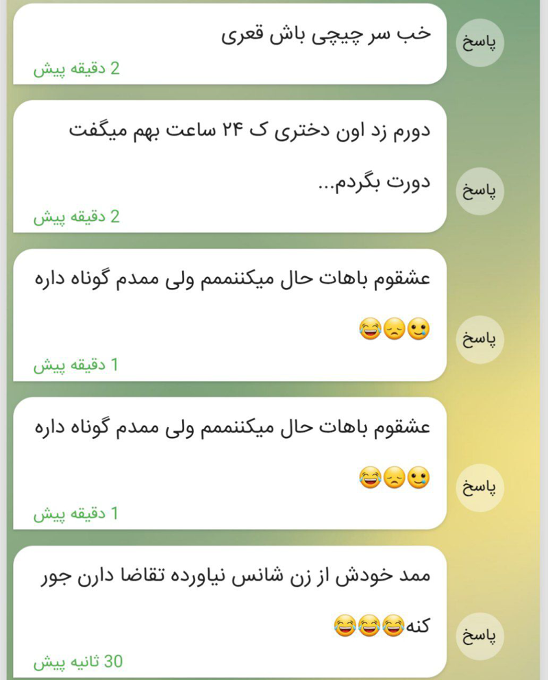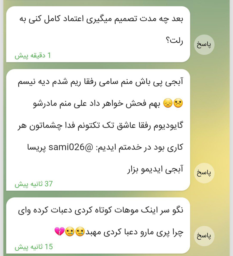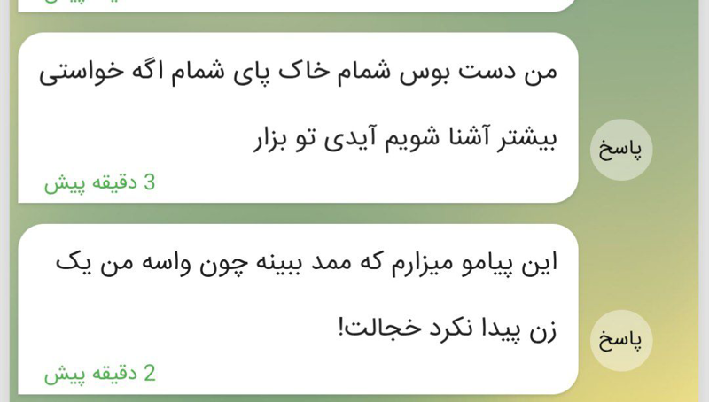 ۱: محدودم داش پیویم پیام بده آشنا شیم