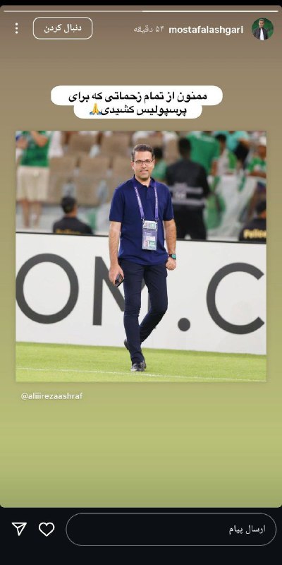 استوری مصطفی لشگری و تشکر از علیرضا اشرف