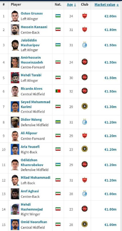 15 بازیکن ارزشمند لیگ ایران