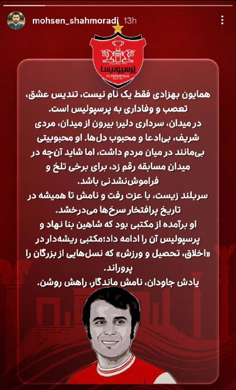 🔴 استوری مدیر رسانه‌ای باشگاه در واکنش به بی‌احترامی برخی به همایون بهزادی