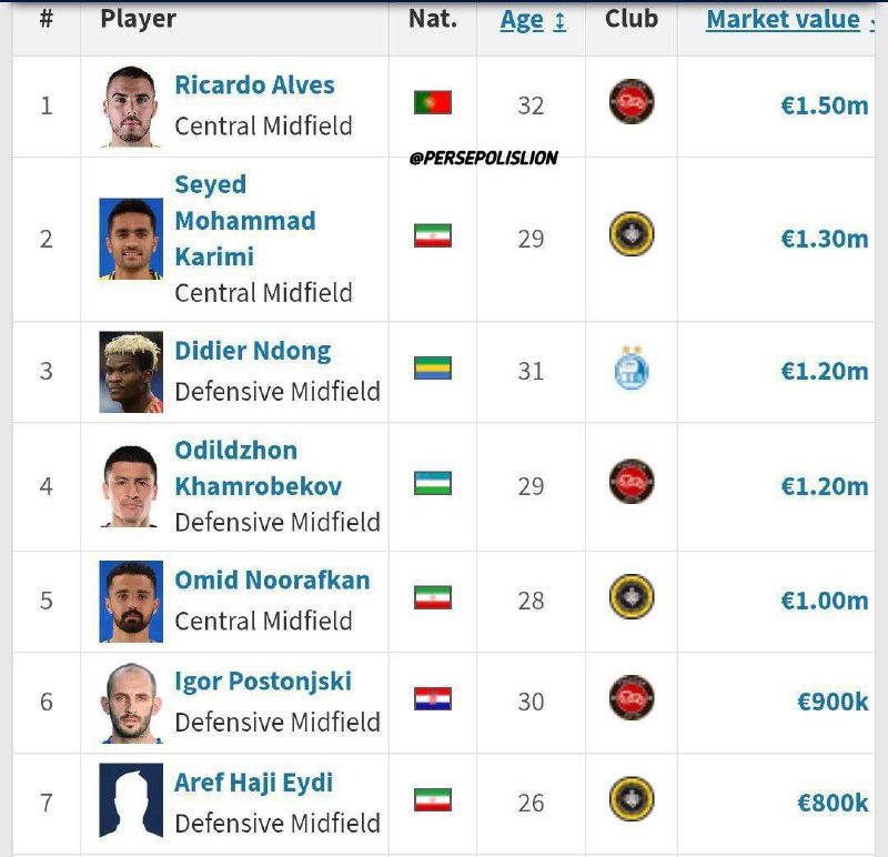 ❗️ارزشمندترین هافبک‌های لیگ‌برتر بدون حضور بازیکنی از تیم‌فوتبال پرسپولیس