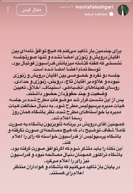 دغدغه‌مندی هوادار مکمل حمایتش از کادرفنی که دوستدارِ موفقیتشه‌. در فاصله ٢٠ روز تا لیگ این تیم واضحاً در هرسه‌‌خطوط خرید میخواد